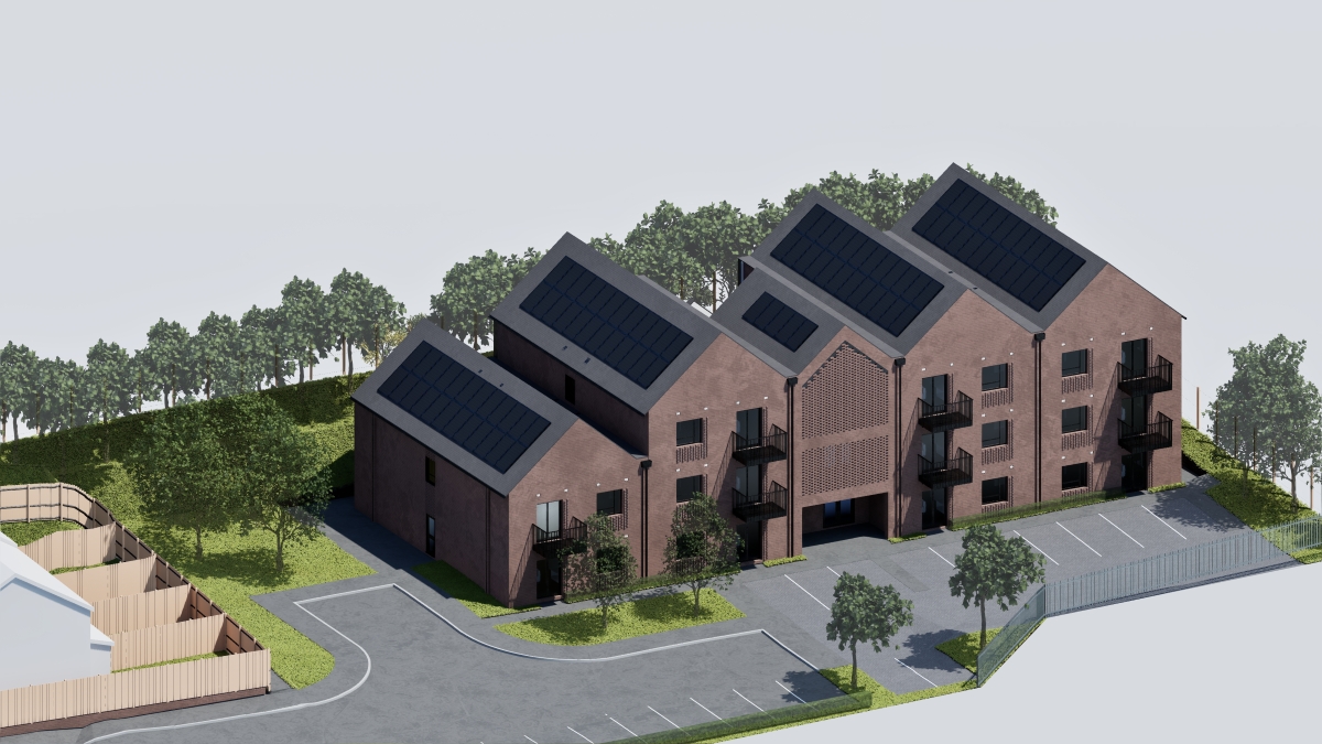 Hughes:O'Hanlon Architects was appointed by a Registered Social Landlord at RIBA Stage 0 to explore options for a 22-unit apartment block on a brownfield site in north Wales.